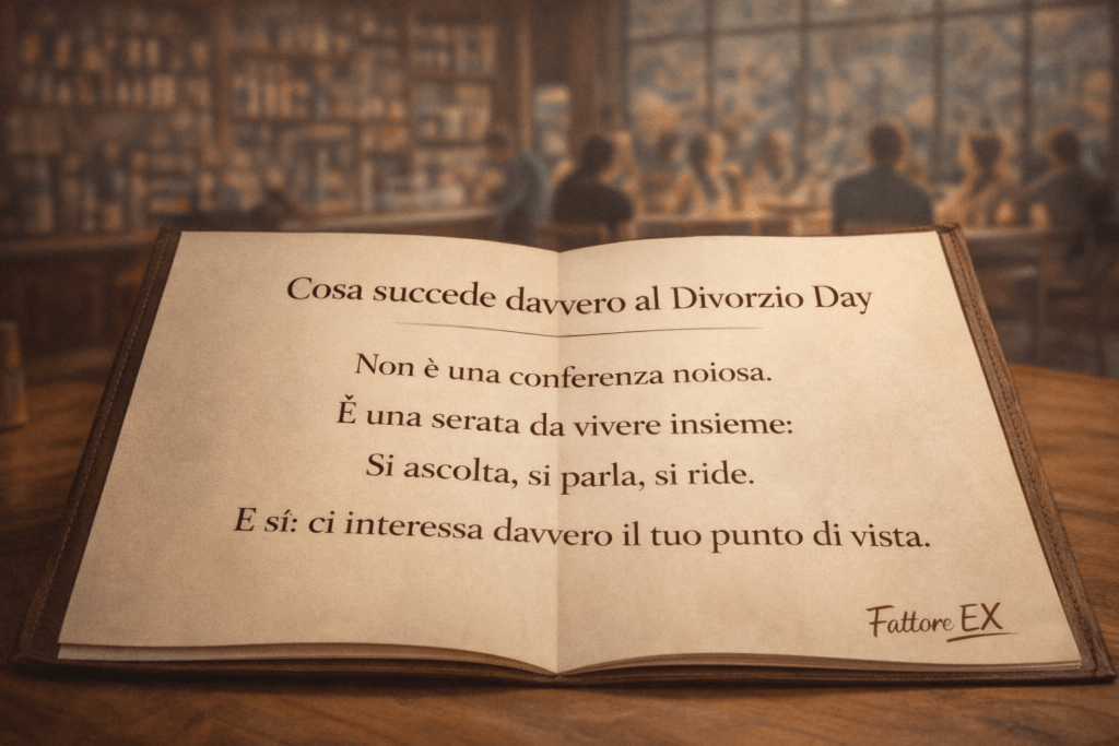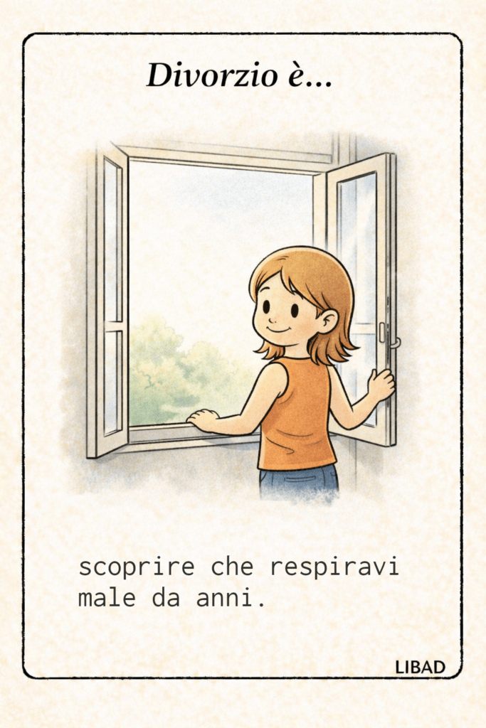 Noi abbiamo mantenuto i rituali dell’inizio, abbiamo perso quelli della trasformazione… così il divorzio è rimasto sospeso in una zona grigia: troppo importante per essere ignorato, troppo scomodo per essere celebrato. In alcuni paesi si fanno i Divorce Party: le feste di divorzio… ne abbiamo scritto in passato qui.